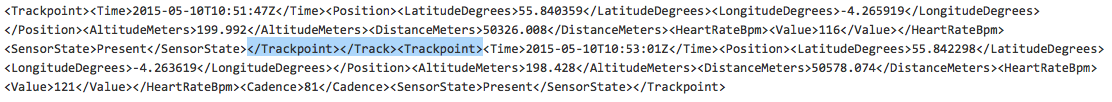 If I can be of any help to anyone else who gets this issue, let me know (I’m sure an exported .fit file, as a binary file, even if I could have corrected it, would not have responded to such easy treatment. Flat, text-based xml files (tcx in this case) are a lot easier to handle.