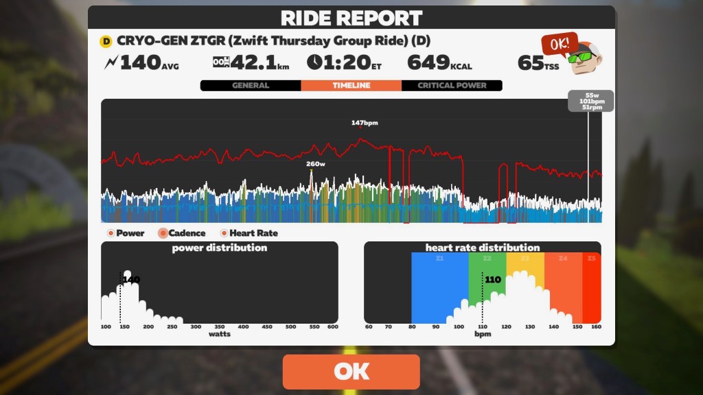 I had an Internet glitch yesterday morning, but I think (hope) it was a national backbone issue. All sorts of sites (including my ISP, BT) had outages at the same time. I carried on pedalling alone, and after the main ride I got Internet back and could save the (60 minute) ride, but I wasn’t in ZP or Zwift “results” as I crossed the 60 minute point (with a banner telling me how far and how fast) without Internet. That’s the first issue I’ve had for a long time, I definitely think it was in the network.