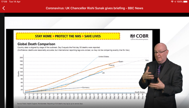 This chart from 14th April show the Government doing a little better over recent days in presenting a chart that visually represents the situation more clearly. Maybe the lower growth makes them more comfortable showing the data on linear axes.