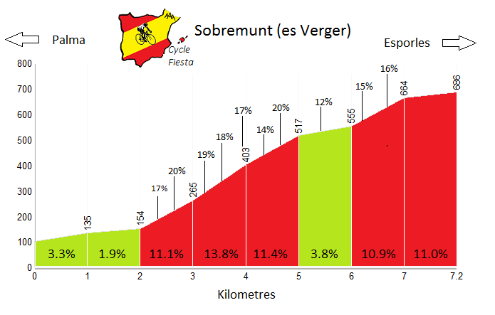 Here are some views of the profile of the Sobremunt climb, from GCN and Cycle Fiesta: