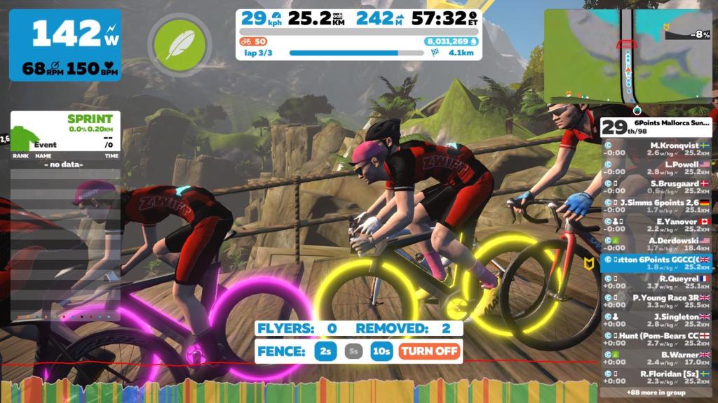 Since 2019, https://6pointschallenges.com, has organised weekly Zwift group rides, led by a “beacon” leader, including the UK’s record breaking Olympic cyclist, Dame Sarah Storey. Sarah and her Storey Racing team members all use Zwift for their training, as do many professional teams.