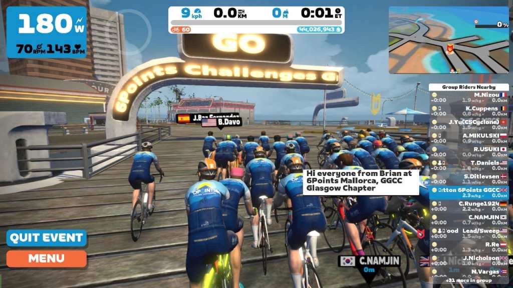 event start, you can also see that everyone wears the 6Points in-game Zwift kit.